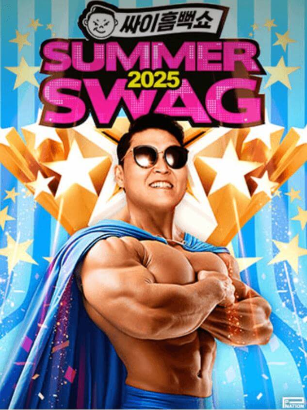2011년부터 시작된 싸이의 대표 여름 콘서트! ‘싸이 흠뻑쇼 SUMMER SWAG’는 평균 180분 이상 진행되며, 물세례, 고압 분사, 떼창, 춤, ‘강남스타일’ 클로징까지 전국을 물들입니다. 100% 젖는 공연, 티켓팅 경쟁률도 100% 전쟁입니다.